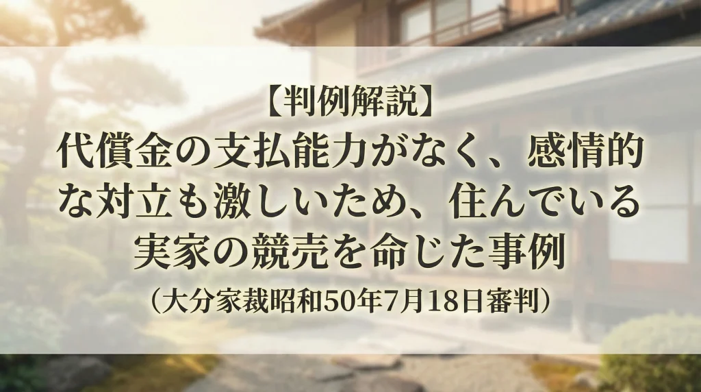 【判例解説】代償金の支払能力がなく、感情的な対立も激しいため、住んでいる実家の競売を命じた事例(大分家裁昭和50年7月18日審判)