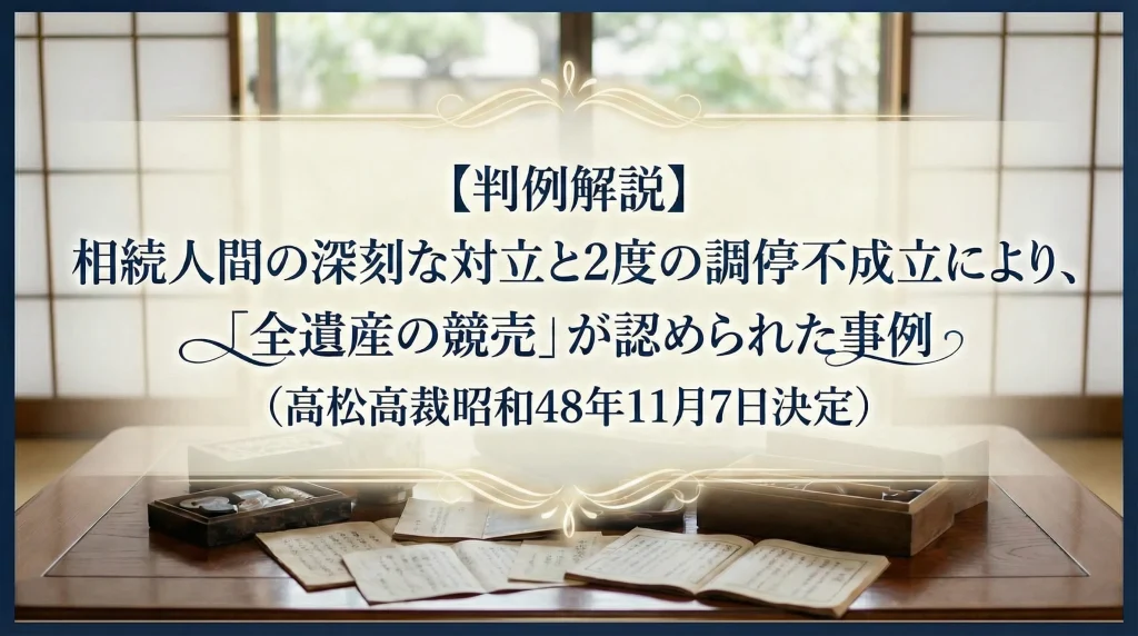 【判例解説】相続人間の深刻な対立と2度の調停不成立により、「全遺産の競売」が認められた事例(高松高裁昭和48年11月7日決定)