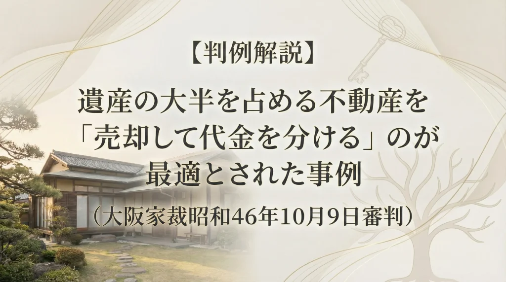 【判例解説】遺産の大半を占める不動産を「売却して代金を分ける」のが最適とされた事例(大阪家裁昭和46年10月9日審判)