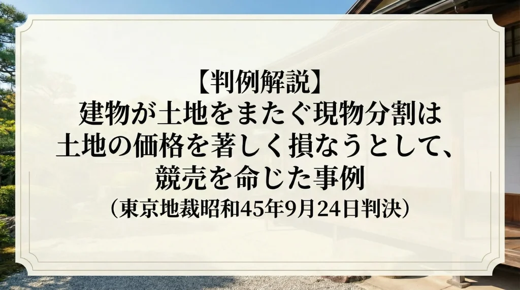 【判例解説】建物が土地をまたぐ現物分割は土地の価格を著しく損なうとして、競売を命じた事例(東京地裁昭和45年9月24日判決)