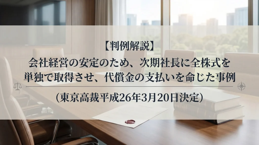 【判例解説】会社経営の安定のため、次期社長に全株式を単独で取得させ、代償金の支払いを命じた事例(東京高裁平成26年3月20日決定)