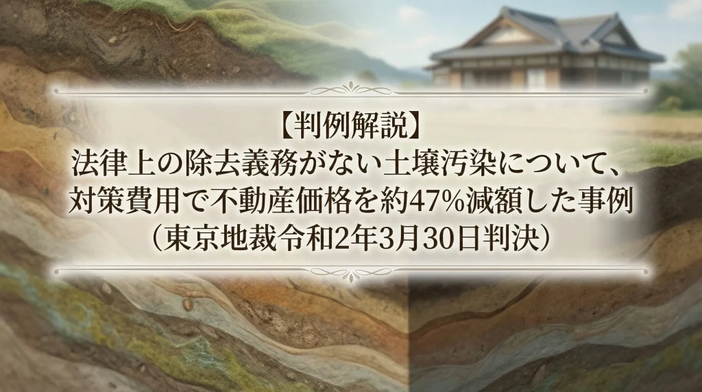 この記事のポイント 争点:法律上の除去義務がない汚染について、対策費用を不動産価格から差し引くことは有効か? 結論:裁判所は、市場取引での値引き実態を重視し、対策費用の「全額控除」を認めた。 ポイント:一見きれいな土地でも、「地歴調査」を怠... -