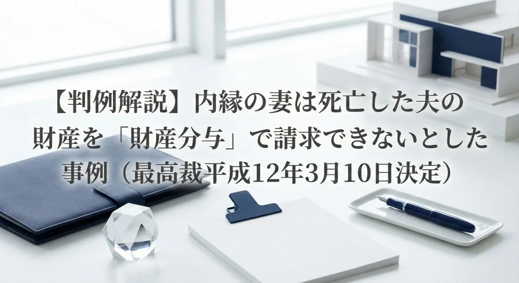 この記事のポイント 争点:内縁関係(事実婚)が一方の「死亡」で終了した場合、離婚時と同じように財産分与を請求できるか? 結論:最高裁判所は、死亡による関係解消の場合、財産分与の規定は適用(または類推適用)されないと判断した。 ポイント:事実... -