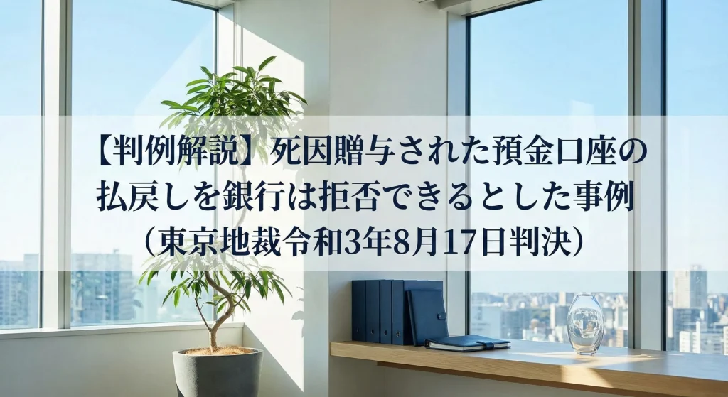 【判例解説】死因贈与された預金口座の払戻しを銀行は拒否できるとした事例(東京地裁令和3年8月17日判決)