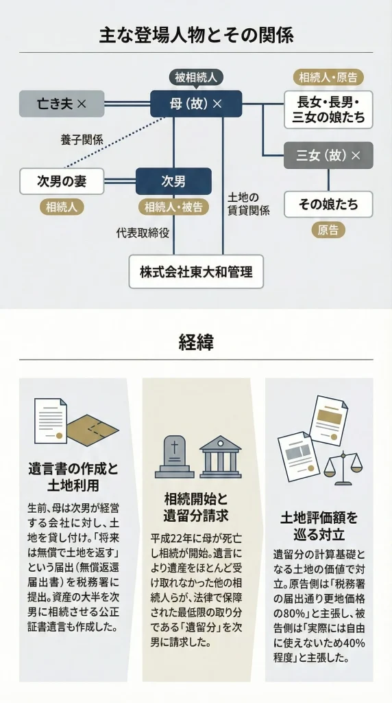 今回の事案は、亡くなった母親(被相続人)の遺産をめぐり、多くの財産を譲り受けた次男と、その他の相続人との間で起きたトラブルです。