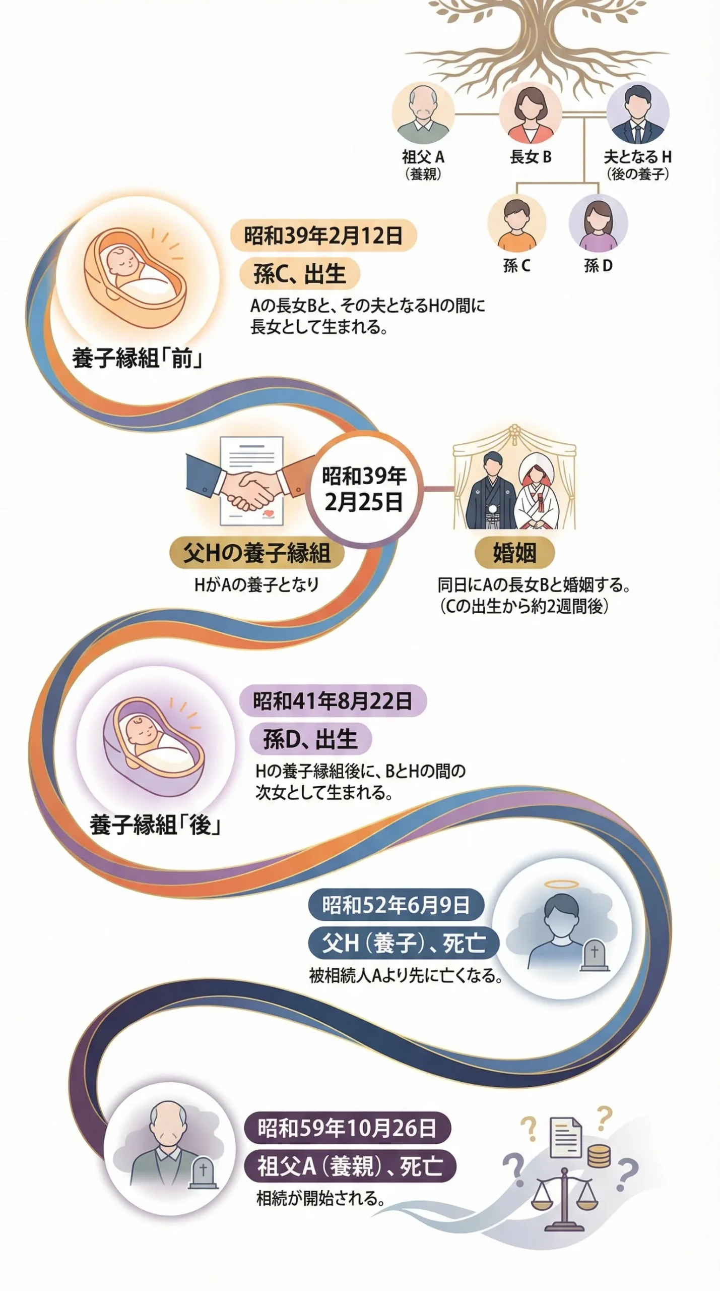 - ポイント:複雑な家族関係(養子縁組と親族間結婚など)がある場合は、遺言書等で意思を明確にしておくことが重要。