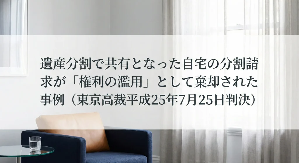遺産分割で共有となった自宅の分割請求が「権利の濫用」として棄却された事例(東京高裁平成25年7月25日判決)