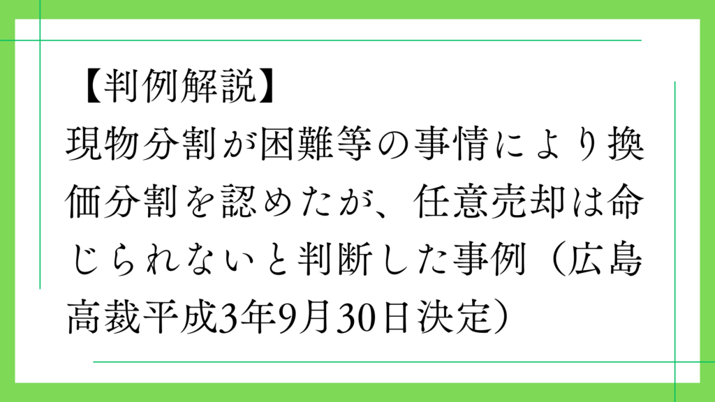 【判例解説】現物分割が困難等の事情により換価分割を認めたが、任意売却は命じられないと判断した事例(広島高裁平成3年9月30日決定)