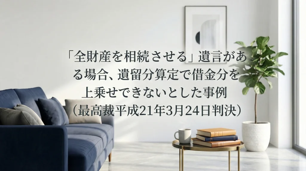 「全財産を相続させる」遺言がある場合、遺留分算定で借金分を上乗せできないとした事例(最高裁平成21年3月24日判決)